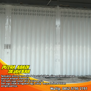 Salah satu tempat terpercaya untuk memesan pintu harmonika ialah Putra Abadi Sejahtera, di sini Anda bisa memesan pintu sesuai dengan kebutuhan. Baik jenis pintu, bahan yang diinginkan, hingga ukuran yang menyesuaikan toko atau ruko yang Anda miliki.